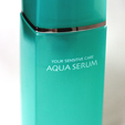 当店で一番よく売れている美容液が写真のアクアセラム(60ml 3500円)。 お値段がお手頃で、クロロをご使用でない方にも人気があります。お肌にすばやく潤いを与え、その潤いを持続する…油分の入っていないサラリとした美容液ですが、2種のヒアルロン酸が配合されていて、お肌の水分含量を高めるとともに、バリア機能もアップ。以前のクロロフィルになかった保湿力の高いアイテムです。